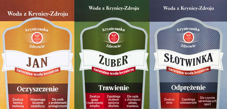 - Zuber: Najsilniejsza woda, pomaga na chorobę wrzodową żołądka, cukrzycę i schorzenia wątroby. Łagodzi objawy nadużycia alkoholu (obniża poziom toksyn, choć sam etanol szkodzi zdrowiu).